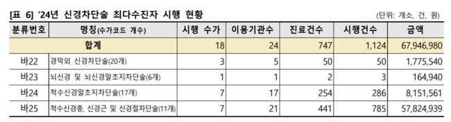 24년 신경차단술 최다수진자 시행 현황[국민건강보험공단제공]