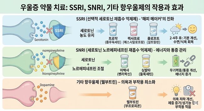 다행스러운 것은 의학의 진보가 뇌의 화학적 불균형을 바로잡을 강력한 무기들을 개발해냈다는 점이다. 우울증 치료의 핵심은 단연 약물 치료다. 수많은 환자가 ‘약을 먹으면 중독된다’거나 ‘바보가 된다’는 근거 없는 공포 때문에 치료를 거부하지만, 항우울제는 현대 의학이 이룩한 가장 안전하고 효과적인 발명품 중 하나다.