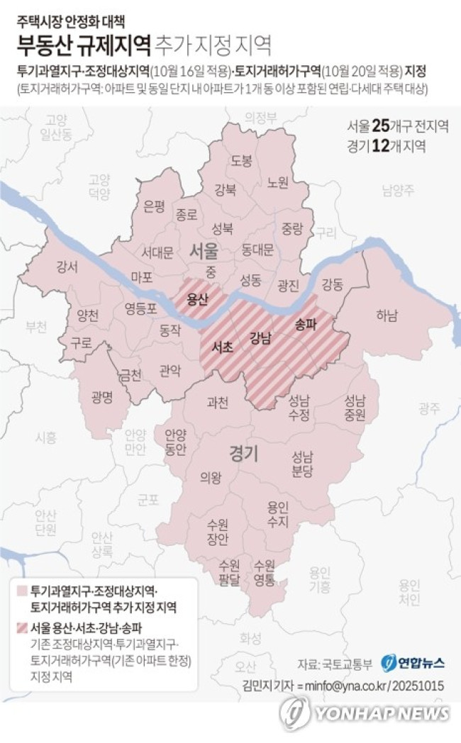 서울 전역, 분당·용인·수원 등 12곳 조정·투과·토허구역까지 묶여