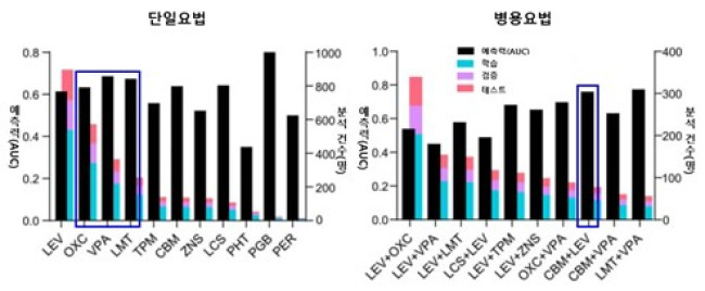 그 결과 주요 항경련제 단일요법 가운데서는 발프로산(0.686), 라모트리진(0.674), 옥스카르바제핀(0.633)에 대한 AI의 치료 반응 예측력(AUC)이 높은 편이었다. AUC 값은 1에 가까울수록 예측 정확도가 높다는 의미다.